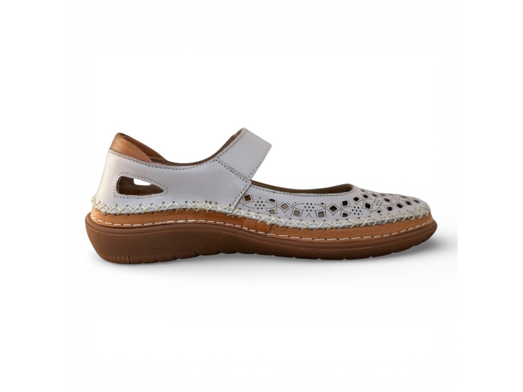 Popis: Hledáte dokonalé spojení elegance, pohodlí a prodyšnosti pro teplé dny? Tyto dámské baleríny značky Aurelia jsou ideální volbou pro každodenní nošení, ať už se chystáte do práce, na procházku městem nebo na neformální setkání.Prémiový materiál: Svršek obuvi je vyroben z vysoce kvalitní pravé kůže, která je poddajná a měkká, čímž se skvěle přizpůsobí tvaru vašeho chodidla.Maximální prodyšnost: Celoplošná perforace zajišťuje optimální cirkulaci vzduchu, takže vaše nohy zůstanou svěží i během horkých letních dnů.Snadné zapínání: Praktický pásek přes nárt se suchým zipem umožňuje rychlé obouvání a přesné nastavení podle výšky vašeho nártu.Komfortní došlap: Obuv je vybavena koženou stélkou, která je bohatě vyměkčená pro pohodlí při každém kroku.Flexibilní podešev: Prošívaná podešev zajišťuje odolnost a přirozený pohyb chodidla při chůzi.